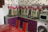 Кухня: плита, холодильник, микроволновая печь, электрочайник, посуда.