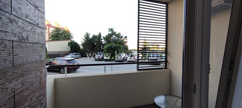 В жаркое время комфорт в апартаментах поддерживает мощный кондиционер.