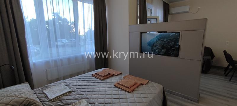 Апартаменты в уникальном комплексе делюкс-класса юго-восточного Крыма Apart-Hotel & SPA “ATLAS”. Расположенный у подножия заповедного урочища Алчак-Кая, на первой береговой линии Чёрного моря.