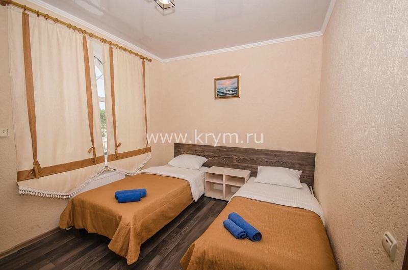 Количество номеров: 4. В санузле просторная душевая кабина. Этот номер обычно выбирают гости, любящие тихий отдых.