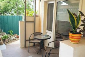 Комфортный номер с отдельный входом и мини двориком. В номере: кондиционер, санузел, кабельное ТВ, холодильник, окна пвх, роллеты, 2-х спальная кровать, прикроватные тумбочки, шкаф, комод.