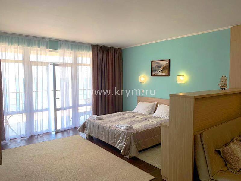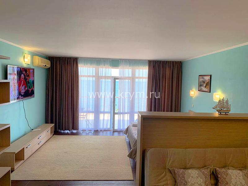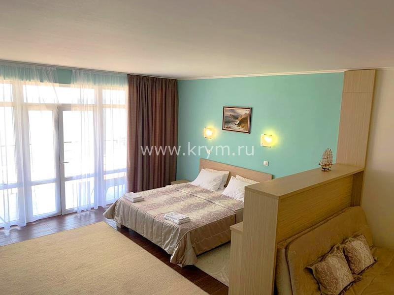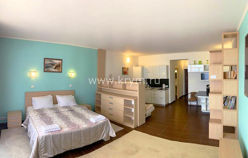 Семидворье лучший отдых в Крыму Частные однокомнатные номера-апартаменты с кухней, площадью 45 кв.м, расположены на 2 этаже.