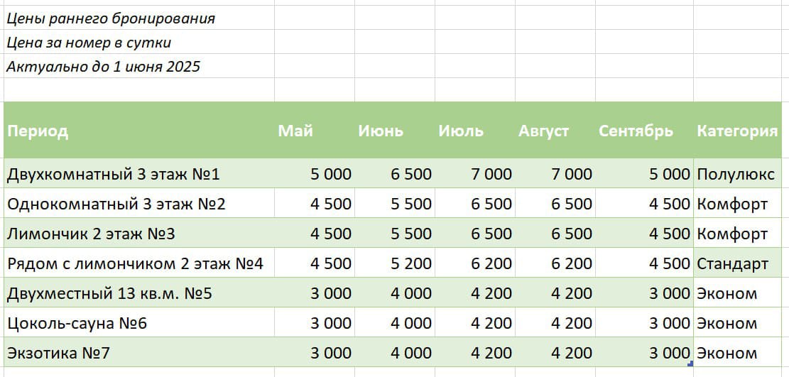 * Цены могут меняться администрацией ресурса в течении сезона.