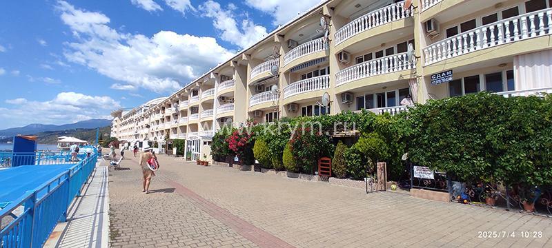 Рекреационный комплекс, где находится номер - относится к Алуштинскому району, уютно размещенному в можжевеловой роще, на Южном берегу Крыма, 9-й км трассы Алушта - Судак: на территории отельного комплекса, между отелей "Эллада" и отелем "Морской".