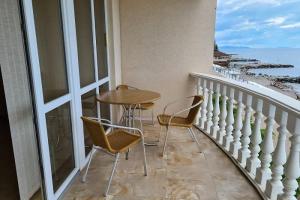 Балкон: имеет вид на море, стоит пластмассовая мебель на балконе :стол и 4 стула.