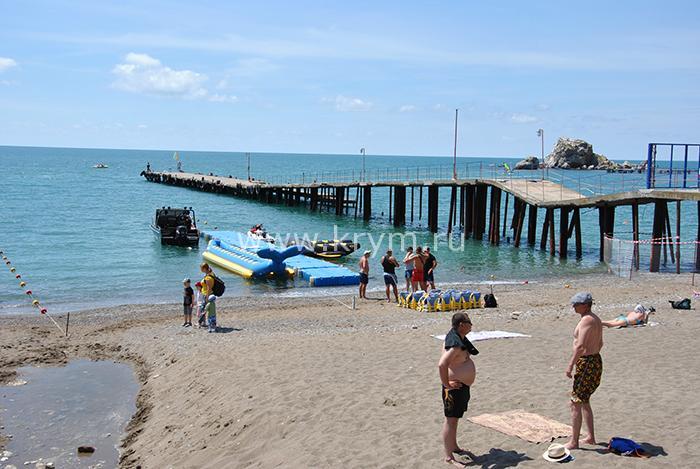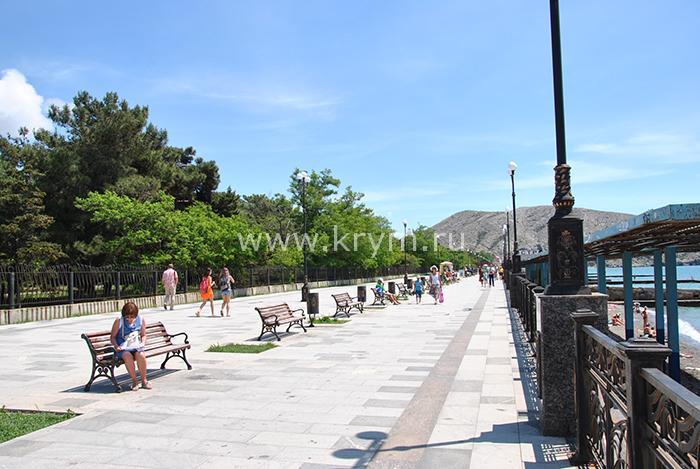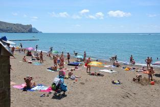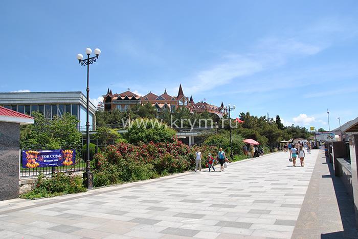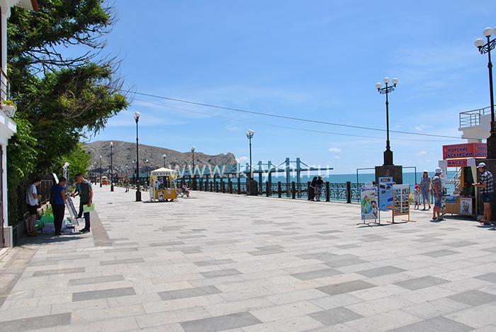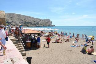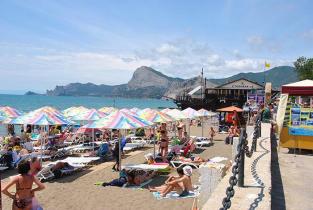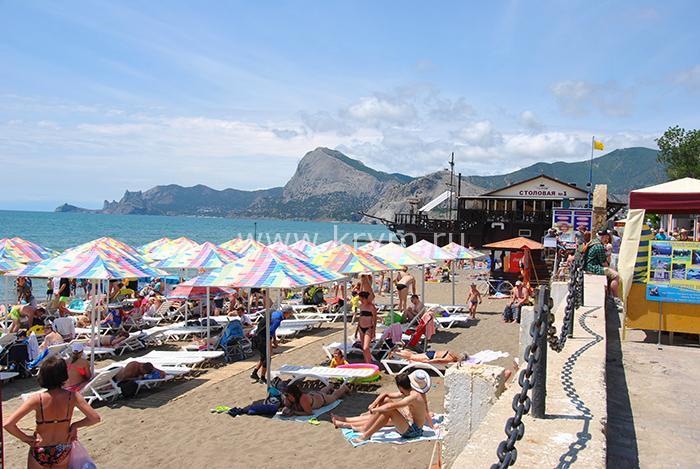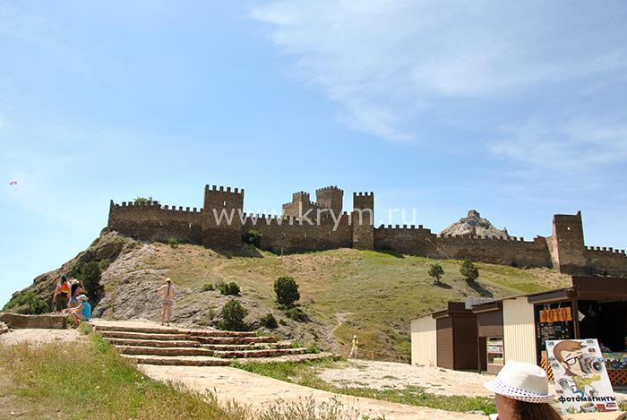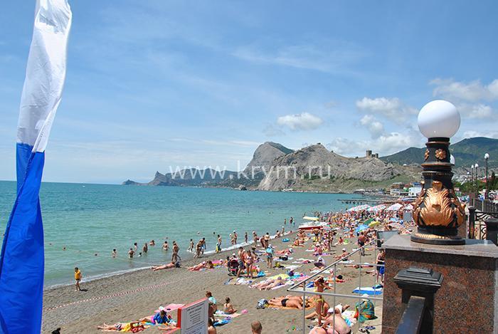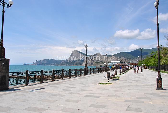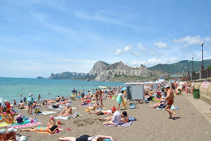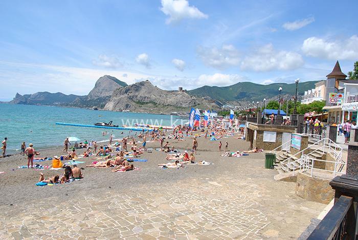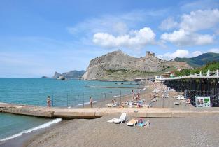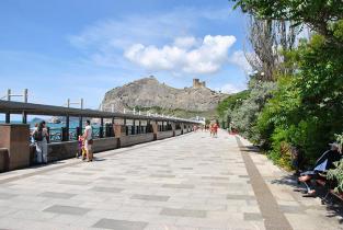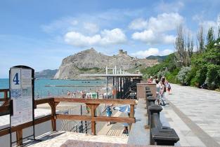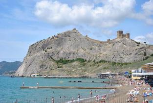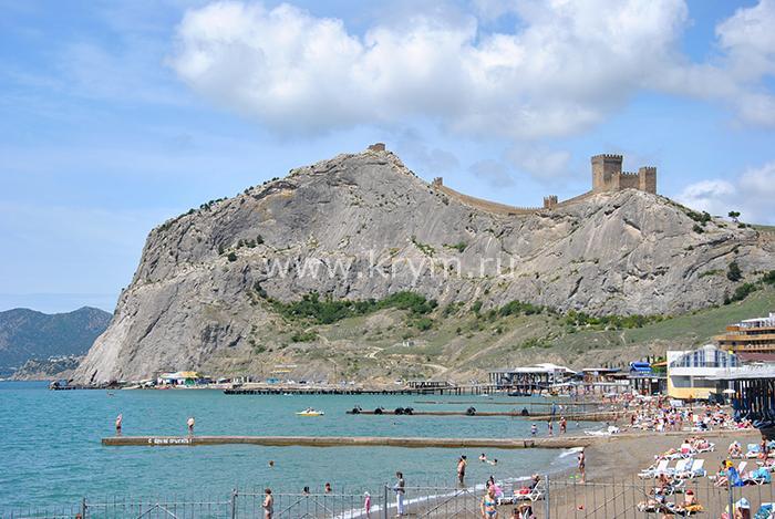 Крепость невероятно живописна и фотогенична. Здесь снято множество кинофильмов, с её стен открываются великолепные пейзажи Судакской долины. Судакская крепость - наиболее сохранившееся в Крыму сооружение среди подобных. С востока бухта ограничена мысом Алчак. Между крепостной скалой и мысом простирается длинная полоса песчаного пляжа. Часть пляжей платные, часть - свободные. Оборудование пляжей вполне соответствует стандартам - шезлонги, зонтики, прокат всяческого снаряжения, скутеры, катание на банане и прочее. Желающие уединиться отправляются на мыс Алчак.