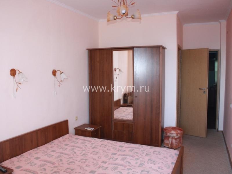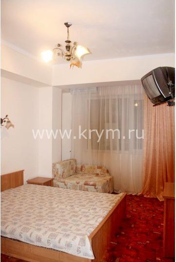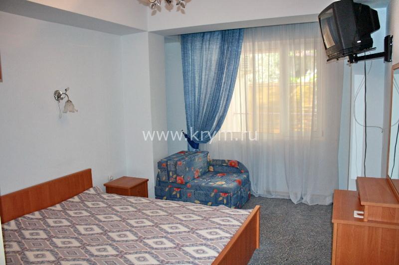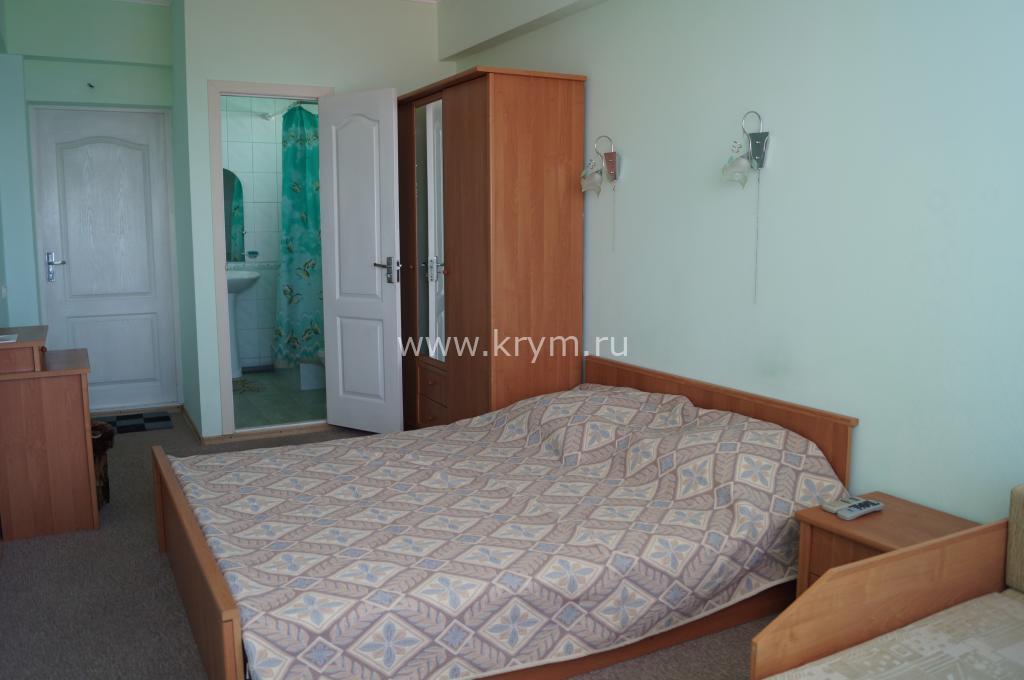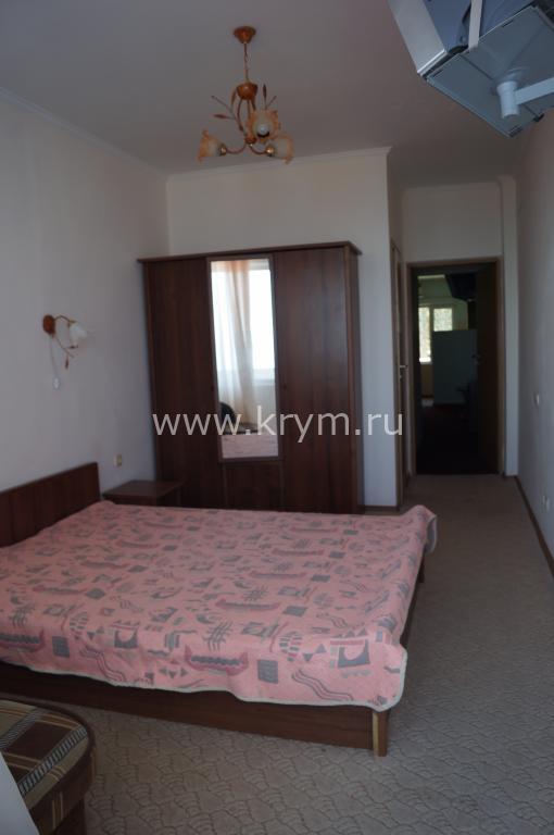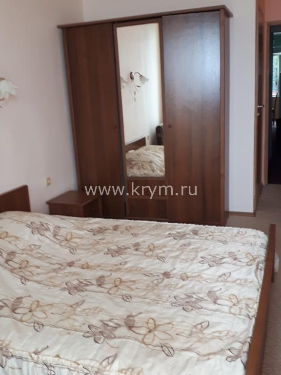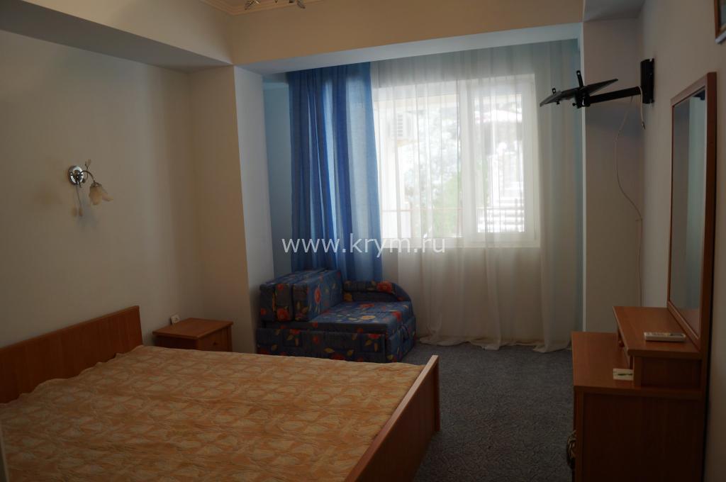 В номере 2х спальная кровать , кресло или раскладной диван., прикроватные тумбочки, платяной шкаф, ЖК телевизор, кондиционер, сан. узел.