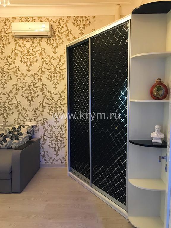 2)"кабинет" -15м2 :раскладной двухспальный диван-кровать,угловой шкаф-купе,LG телевизор 43" ULTRA HD,тумба для белья.Из кабинета -шикарная лоджия с видом на пл.Лазарева
