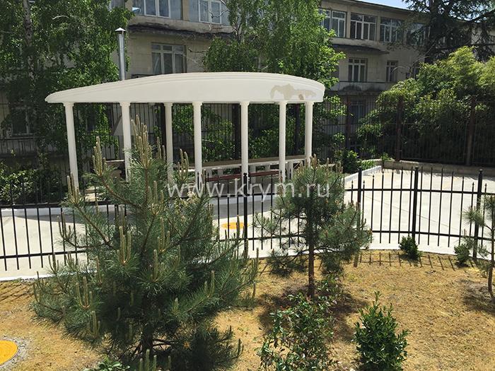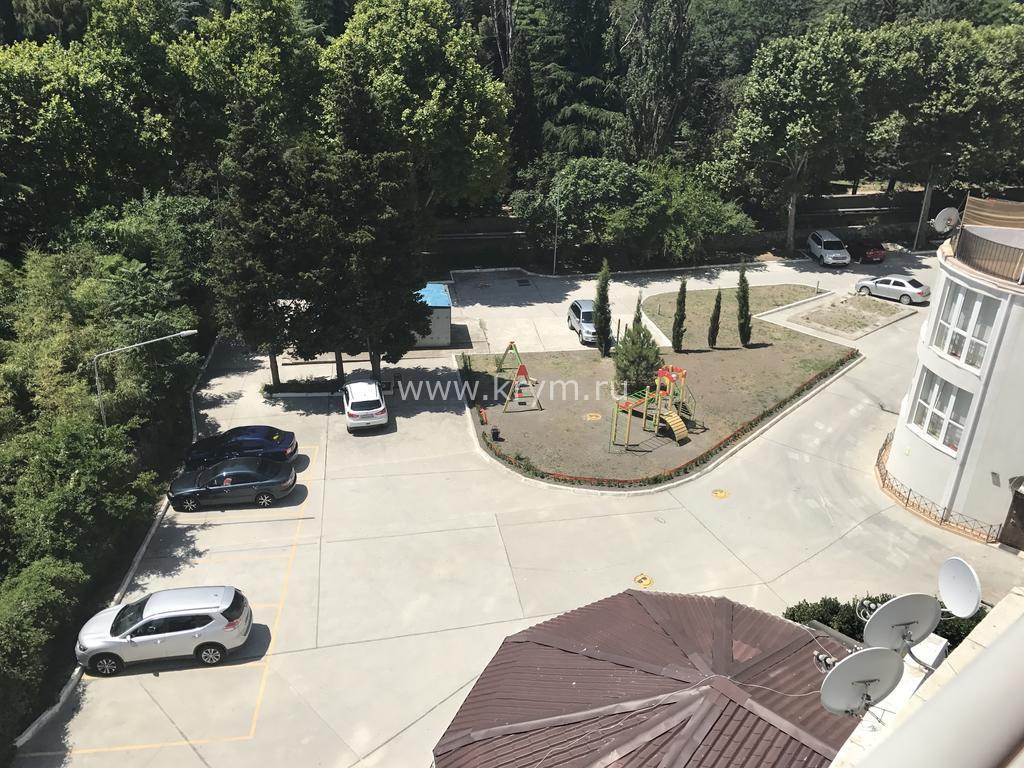 Рядом протекает ручей, впадающий в море, отделяет двор от парка санатория МО РФ "Крым".