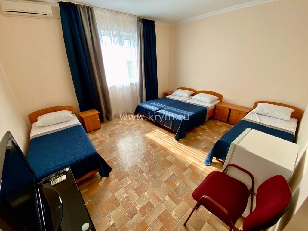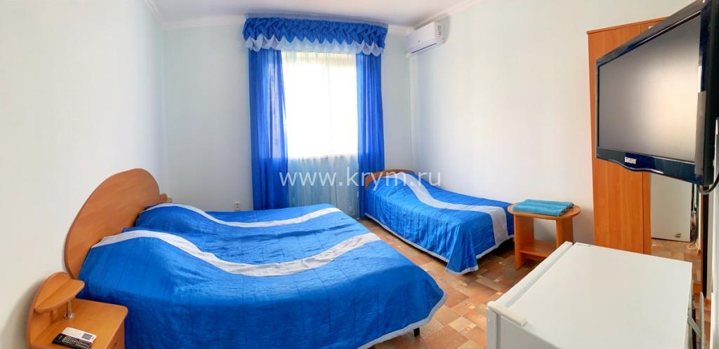 На побережье Каламитского залива Чёрного моря, где-то между легендарным Севастополем и здравницей Евпаторией, уютно расположился не менее известный курортный посёлок, название которому дал герой Крымской войны, отставной матрос – бомбардир Андрей Бобырь, демонстрируя честь, уважение и благодарность императору Николаю II за подаренную землю – Николаевка. Отдых в Николаевке – это не только приобретение загара и бесконечные купания. Это ещё и развлечения. Развлечения на воде и в воздухе – горки, бассейны, катания на скутерах, бананах и гидроаэропланах и т.п. Николаевка – достаточно популярное место летнего отдыха. Перед красотами Южного берега Крыма и прелестями городских курортов имеет она свои преимущества. Отсутствие промышленного производства и порта на территории поселка делают отдых в Николаевке экологически чистым и дают ему полное право гордится этим. Глубина моря идеально подходит и для любителей полноценного плавания и для сторонников детского барахтанья. А галечно-песочный пляж способен вместить на свои просторы огромное количество желающих попрактиковаться в строительстве замков из песка и предпочитающих просто позагорать на горячих камушках… Приезжающие на отдых люди имеют возможность остановиться в многочисленных пансионатах, базах отдыха или снять жилье в частном секторе. Но где бы не поселились гости поселкаНиколаевка, им не приходится тратить много времени, сил и средств, чтобы добраться до моря. Поселок так компактно расположился вдоль побережья, что самые дальние точки оказались в 15 минутах неторопливой ходьбы. Местный Дом культуры представляет возможным посещать различные выставки, концертные программы и кинозал. Множество аттракционов на набережной и, конечно же, Луна-парк, не оставляют равнодушными ни детей, ни взрослых. А огромное количество баров и ресторанов, закусочных и просто столовых позволяют не только подобрать подходящую по вкусу кухню, но и наслаждаться любимой музыкой, танцевальными программами, продемонстрировать свои вокальные и танцевальные способности. Отдых в Николаевке дарует гостям этого молодого курорта возможность расслабиться и забыть об оставленных вдали проблемах, попросту наслаждаться солнечными пляжами, тёплым морем, а, при удачном выборе способа размещения, ещё и комфортным проживанием. Довольно удачным выбором для отдыхающих, стремящихся к полному расслаблению, можно назватьпансионаты в Николаевке. Пансионаты в Николаевке – это курортные учреждения, отдых в которых стал доброй традицией для многих гостей этого приветливого курорта. Можно сказать больше: отдых в Николаевке было бы трудно себе представить без комфортабельных номеров и сервиса в николаевских коттеджах или пансионатах.