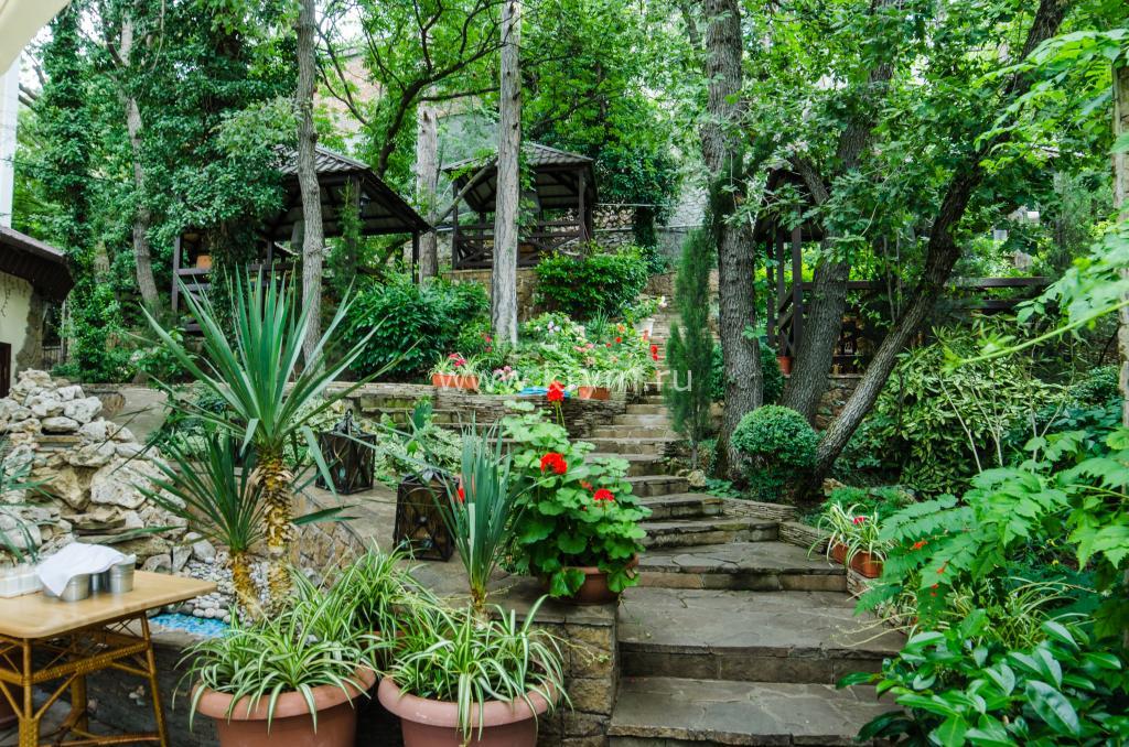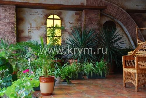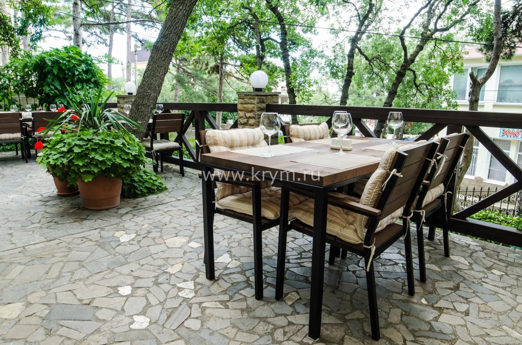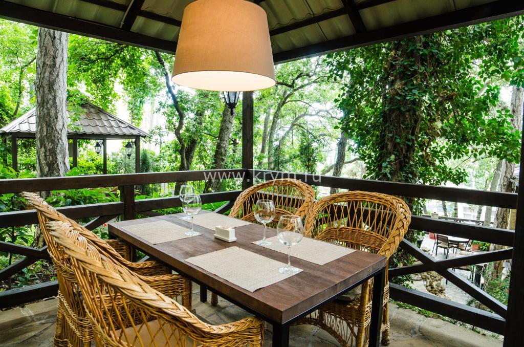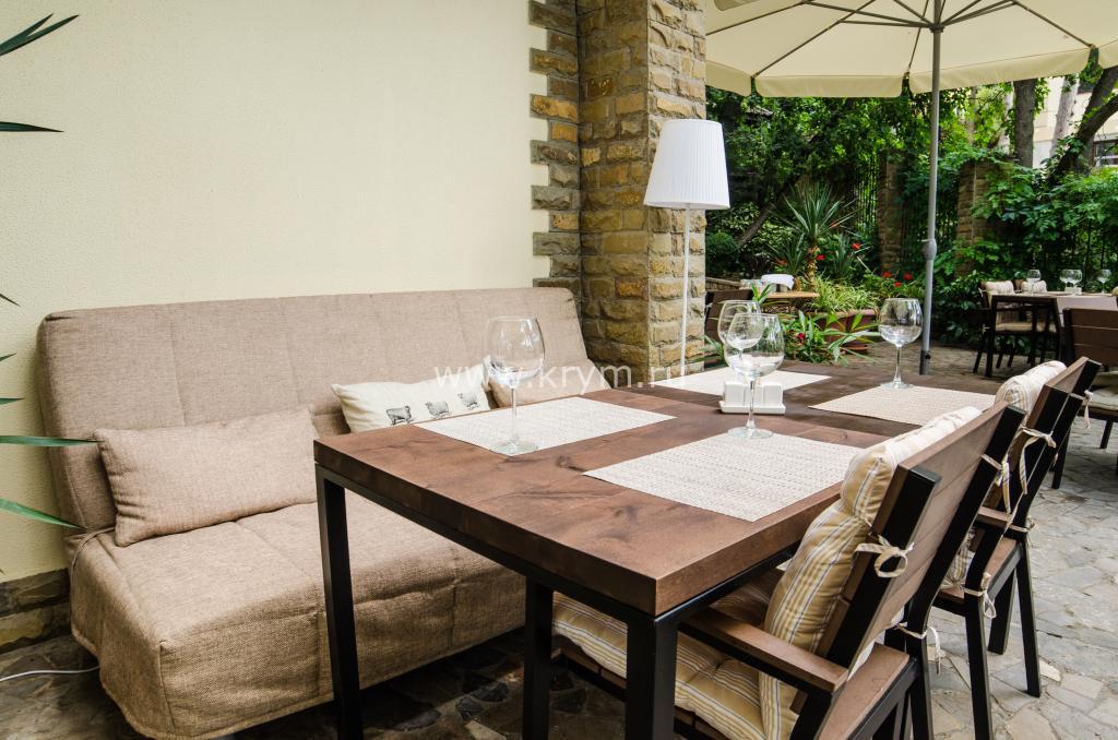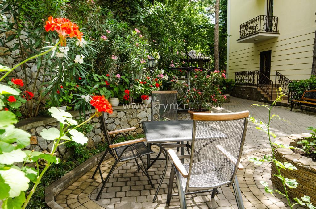 На территории имеется охраняемая стоянка на 5 – 6 машин, бунгало, где можно проводить свой досуг, читая книгу или наслаждаясь бокалом крымского вина.