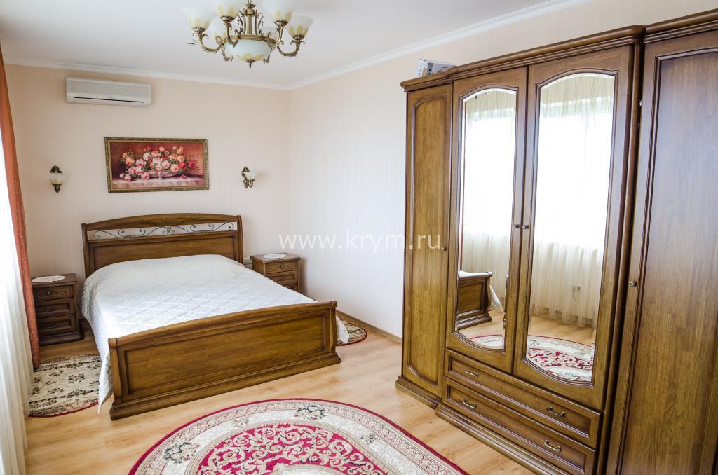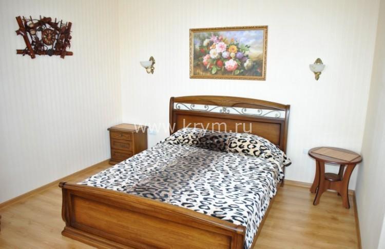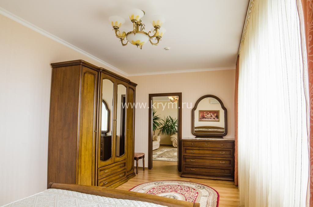 2 комната- спальня: большая двуспальная кровать с 2 прикроватными тумбами, гардероб, комод с зеркалом;