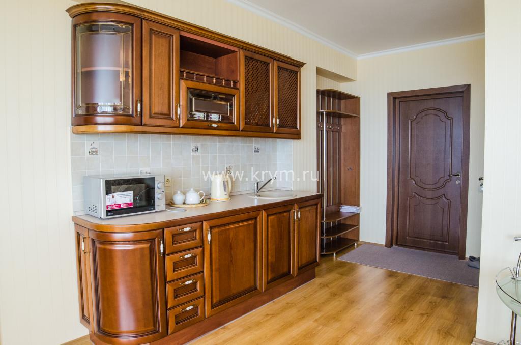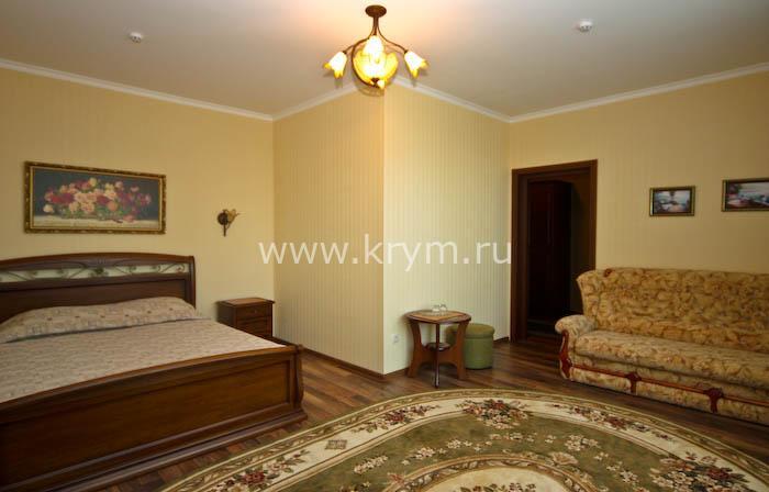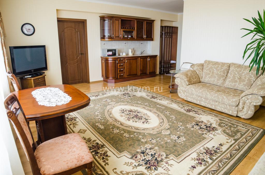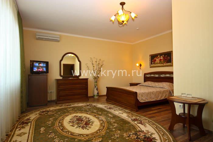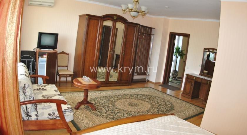 Просторный и очень уютный двухкомнатный номер. В номере санузел (душ с гидромассажем), балкон с видом на море, плазменный телевизор, оборудованная мини-кухня, кондиционер.