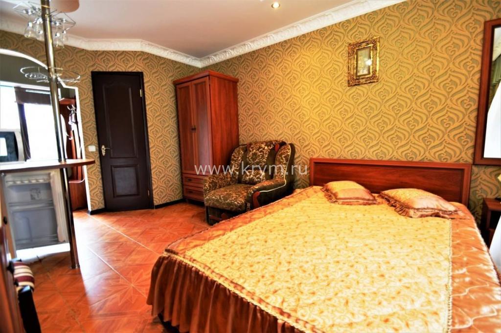 НОМЕР 2-х местный "ПОЛУЛЮКС СТАНДАРТ" 2-3х местный и состоит из одной комнаты, двухспальная кровать, тахта, холодильник, электрочайник, набор чайной посуды, фен, сейф, кондиционер, спутниковое ТВ, санузел.