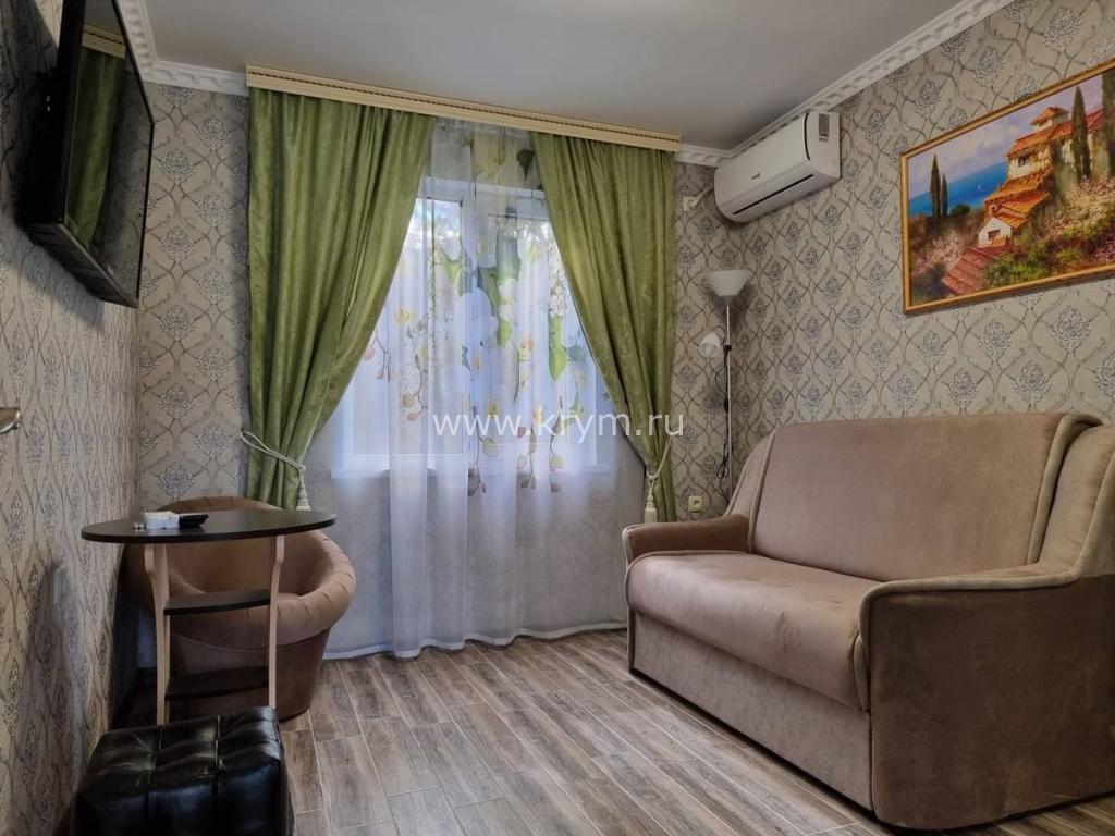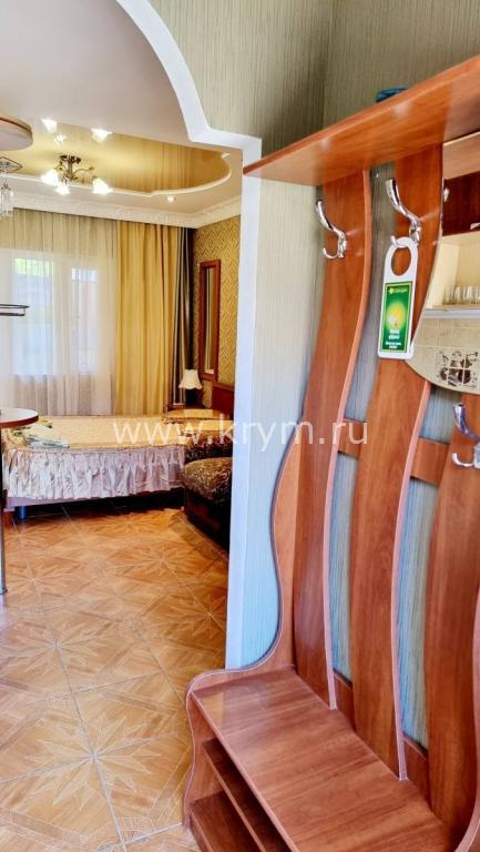 НОМЕР 2-х местный "ПОЛУЛЮКС УЛУЧШЕННЫЙ", 2-3х местный и состоит из одной комнаты, две односпальные кровати, тахта, холодильник, электрочайник, набор чайной посуды, фен, сейф, кондиционер, спутниковое ТВ, санузел.