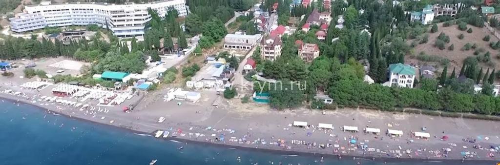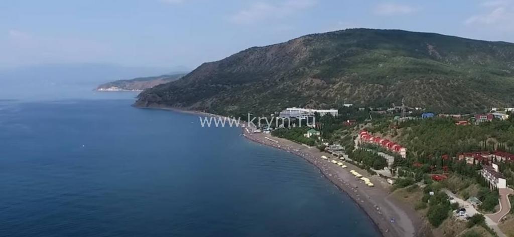 собственный, мелкогалечный, чистый, неподалеку (200м) от пансионата, самый примечательный и известный на побережье