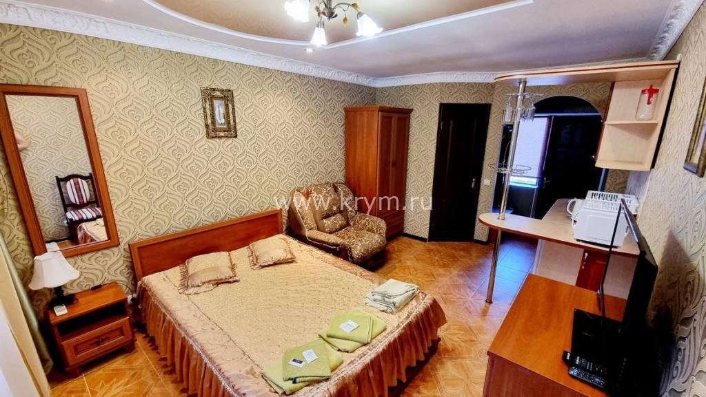 НОМЕР "Флагман", 4-х местный, с кухней- включает: 2 раздельные комнаты,столовую-кухню, ванную комнату,санузел, большую видовую терасу с мебелью для отдыха.