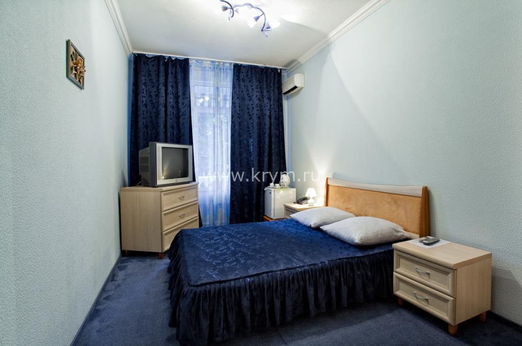 В номере двуспальная кровать, прикроватные тумбочки, комод. В каждом номере кондиционер, охладитель, телефон, телевизор с многоканальным телевидением, электронная система замков. WI - FI интернет.
