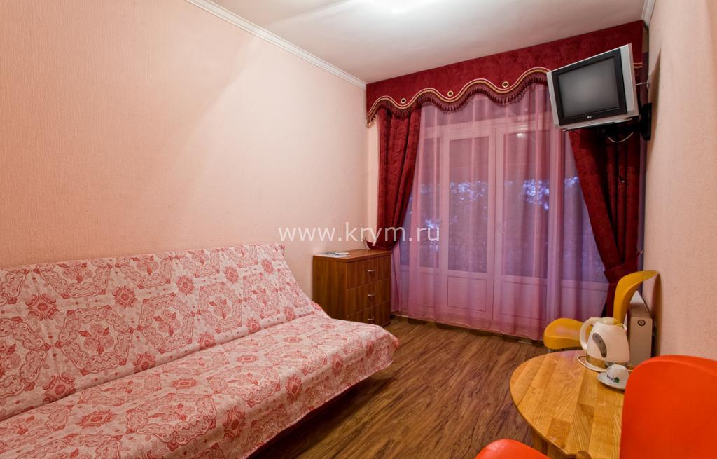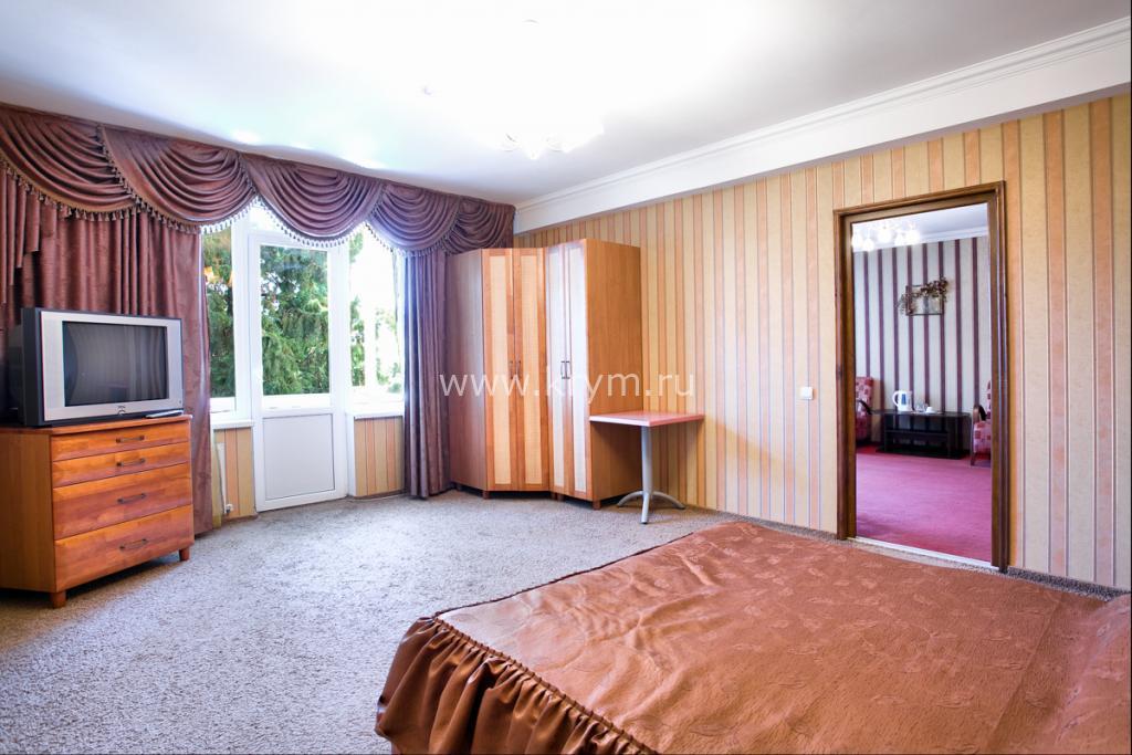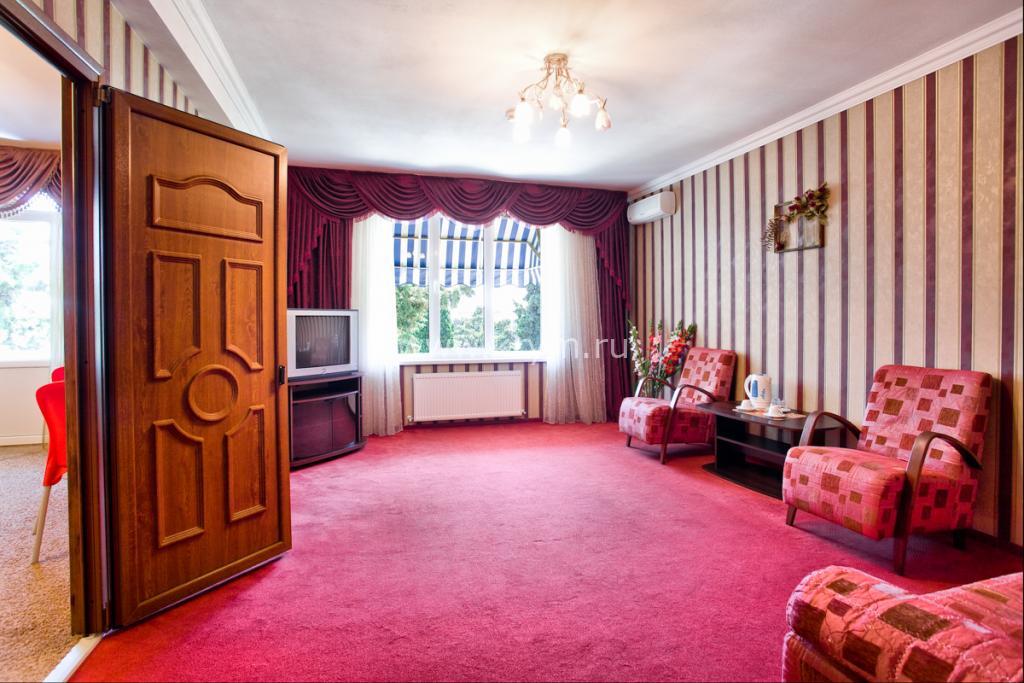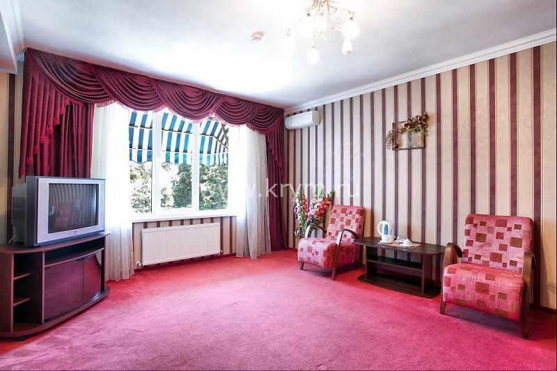 Номера оформлены в классическом стиле, в спальне двухместная кровать, прикроватные тумбочки, комод, телевизор. В гостиной мягкий раскладывающийся диван, который служит как дополнительное место. Кресла с журнальным столиком создают удобное место для чтения и отдыха. Номер оборудован кондиционером, холодильником, телевизором с многоканальным телевидением, телефоном, электронной системой замков. WI - FI интернет.