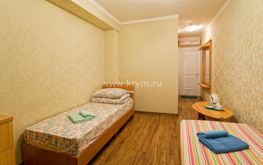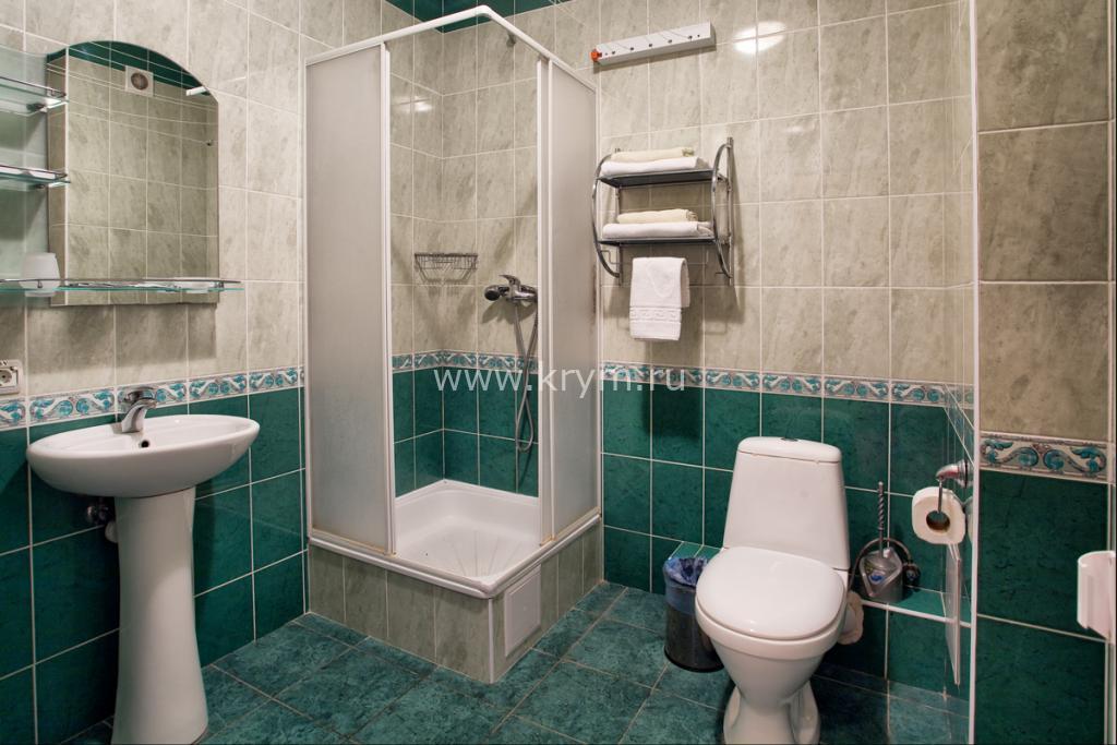 Ванная комната оснащена современной сантехникой, горячая и холодная вода круглосуточно. В распоряжении гостей полотенца, минипарфюмерия. Номера с балконом: №201,301,401,403,501,502, 503, без балкона: №208,308,408,504 с видом на территорию отеля. В стоимость номера входит: проживание двух персон, пользование сейфом, бассейном.