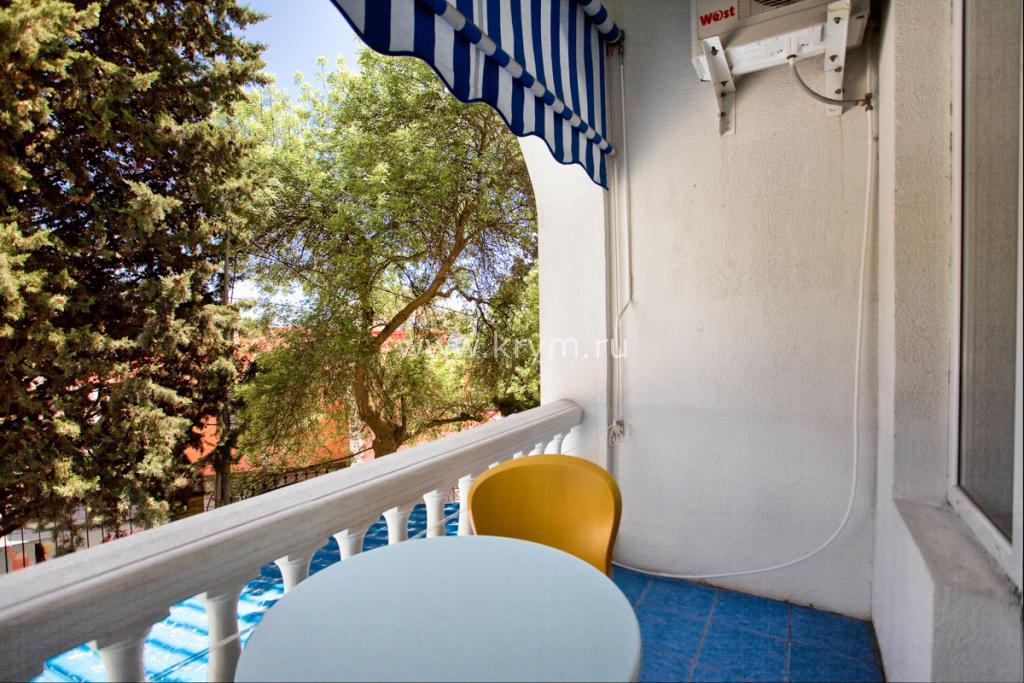 Балкон - №302,402 с видом на море, №202,207,307,407 с видом на территорию отеля.
