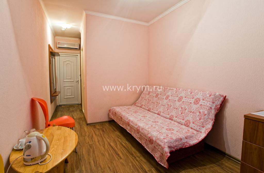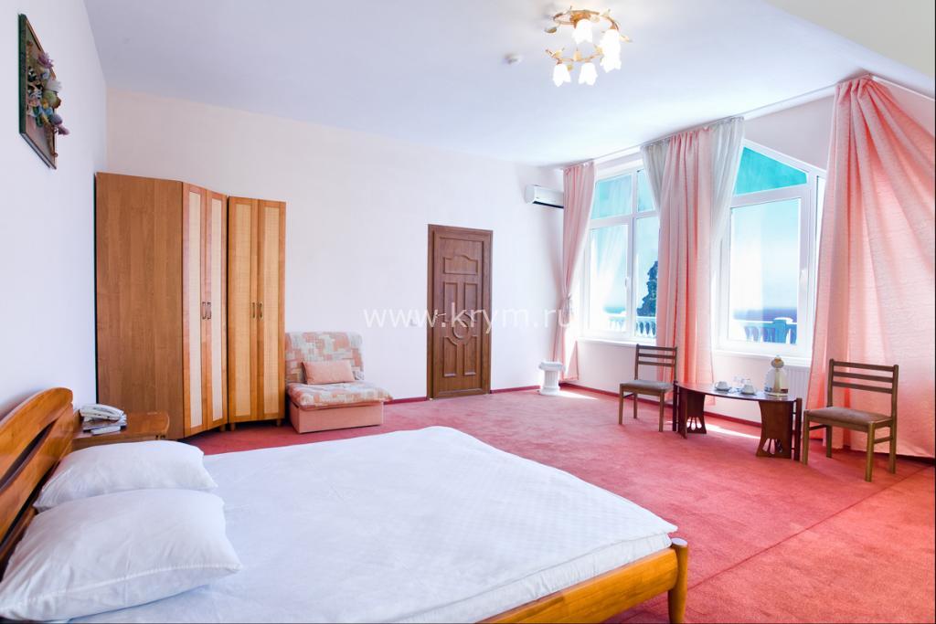 Особенный романтический номер, дизайн интерьера несет хорошее настроение и теплую атмосферу для отдыха. №501,502,503,504 площадью 33 кв.м. Весь 5 этаж, рядом расположена большая терраса с комфортными гамаками и роскошным видом на море. Рекомендуем для большой компании. Каждый номер оборудован кондиционером, охладителем, телефоном, телевизором с многоканальным телевидением, электронной системой замков. WI - FI интернет.