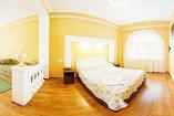 Люкс с балконом двухкомнатный – четырехместный двухкомнатный номер площадью 42 квадратных метра. В спальне двуспальная кровать, в гостиной диван, раскладывающийся на 2 спальных места. Номер оборудован необходимой мебелью, холодильником, кондиционером, спутниковым ТВ, телефоном. Санузел оборудован необходимыми банными принадлежностями и феном. Балкон площадью 10 квадратных метров, оборудован балконным столиком.