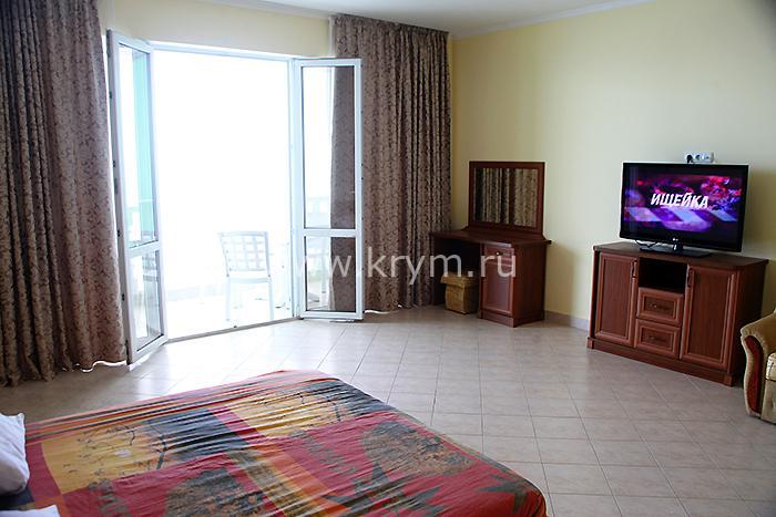 Семидворье лучший отдых в Крыму Частный однокомнатный номер-студия с кухней, площадью 62 кв.м, расположен на 6 этаже.