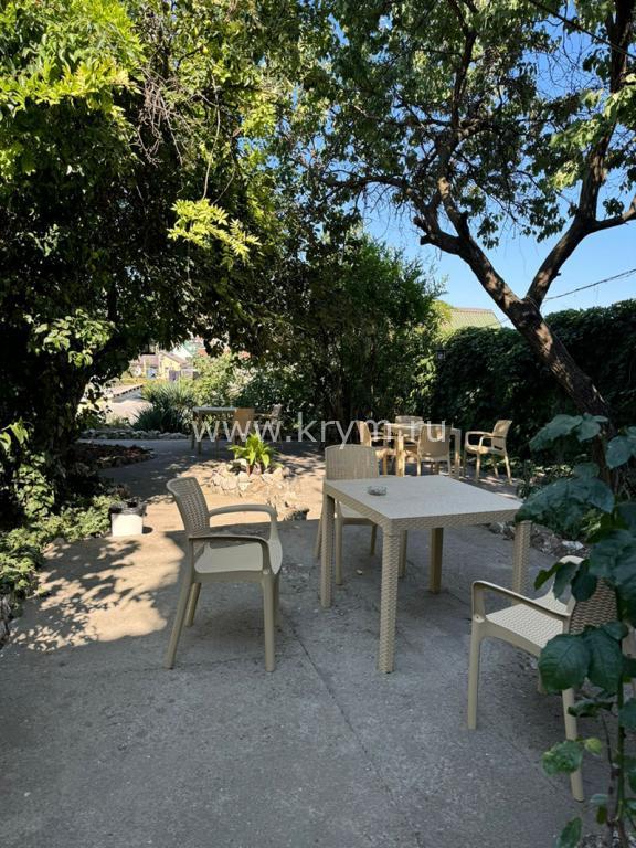 Возле каждого номера отдельный стол с креслами, где Вы можете насладиться чистым крымским воздухом или организовать нечто вроде семейной чайной церемонии.
