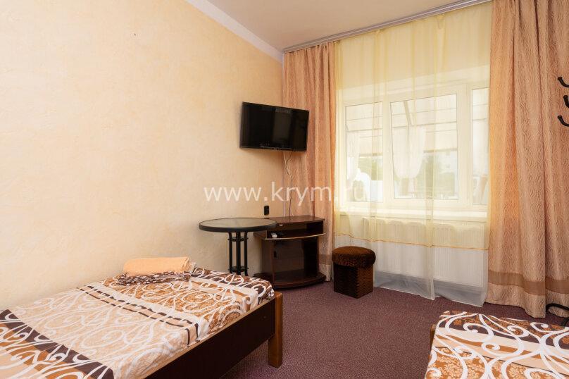 В номере имеется балкон, в обеих комнатах, который выходит во двор пансионата.