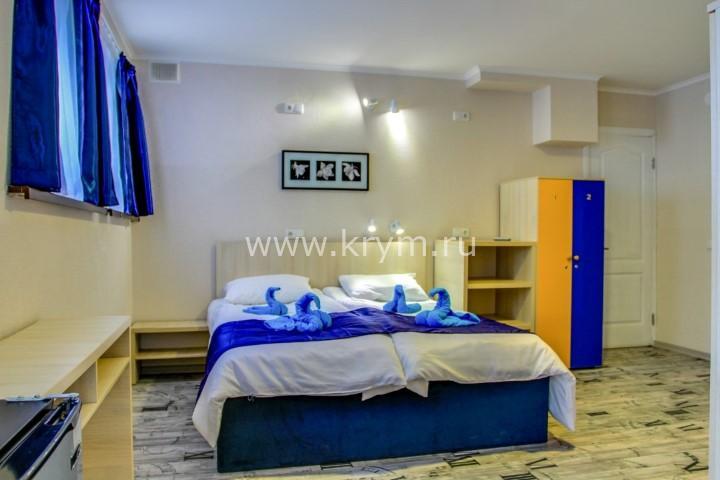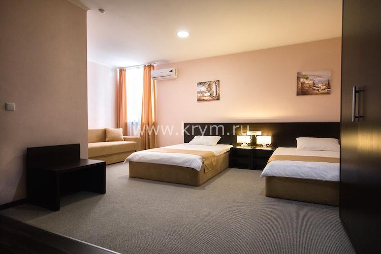 4 трёхместных номера, с возможностью размещения 4-го человека за дополнительную плату. Без балкона, имеет выход из большого окна на внутренний дворик к беседке и 2 трёхместных номера (максимум 3 человека) с балконом.