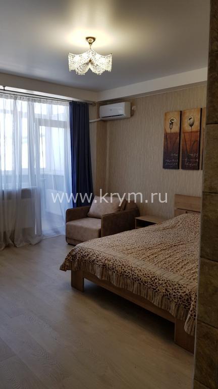 В номере двуспальный удобный диван, две односпальные кровати, кресла, шкаф, тумбочки, стол, стулья, трюмо, смарт-телевизор, интернет, кондиционер, микроволновка, чайник, холодильник, удобный сан. узел. Балкон с прекрасным видом на море и город. Есть место для дополнительного спального места (оговаривается заранее).