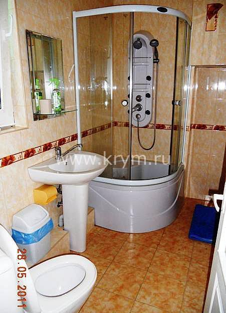 2-комнатный (между комнатами арка) 4-х местный (+1) номер со всеми удобствами (кондиционер, кабельное ТВ, холодильник, унитаз, умывальник, душ, холодная,горячая вода круглосуточно, сервант, миникухня, фен, чайник, печь СВЧ). Выход прямо на индивидуальную огромную террасу для отдыха (установлен стол, стулья). С террасы вид на море и горы, игровую площадку и бассейн.