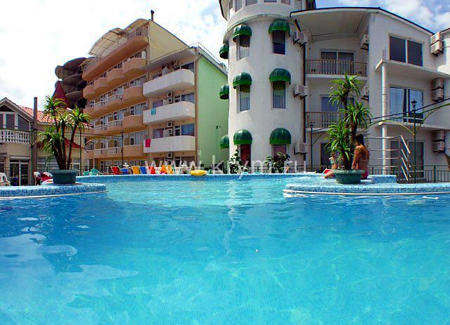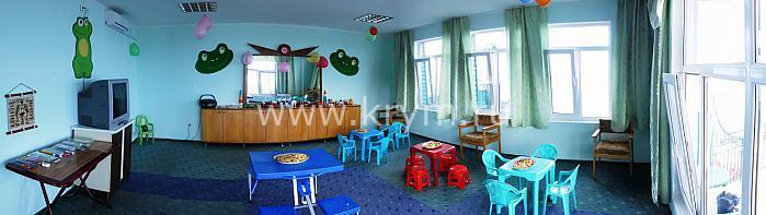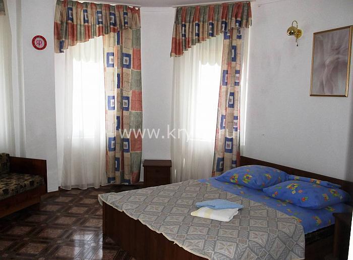 3-х местный номер, с выделенным отдельным местом за стенкой со своим окном, 2-х спальная кровать, кухня в номере,со всеми удобствами (кондиционер, кабельное ТВ, холодильник, унитаз, умывальник, душ, холодная,горячая вода круглосуточно, фен, чайник, печь СВЧ). Выход прямо на террасу для отдыха, с обеих окон вид на море, с террасы на игровую площадку и бассейн