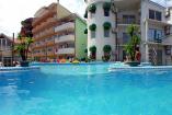 4-х местный номер, с выделенной отдельной комнаткой со своим окном и 2-х местным диван-кроватью + 2-х спальная кровать, кухня в номере и со всеми удобствами (кондиционер, кабельное ТВ, холодильник, унитаз, умывальник, душевая кабина, холодная,горячая вода круглосуточно, фен, чайник, печь СВЧ). Выход прямо на террасу для отдыха, с обеих окон вид на море, с террасы на игровую площадку и бассейн