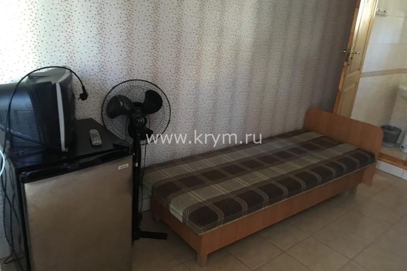 В номере есть две раздельные кровати, шкаф, тумбочка, холодильник,телевизор, вентилятор , электрический чайник , минимальный набор посуды .