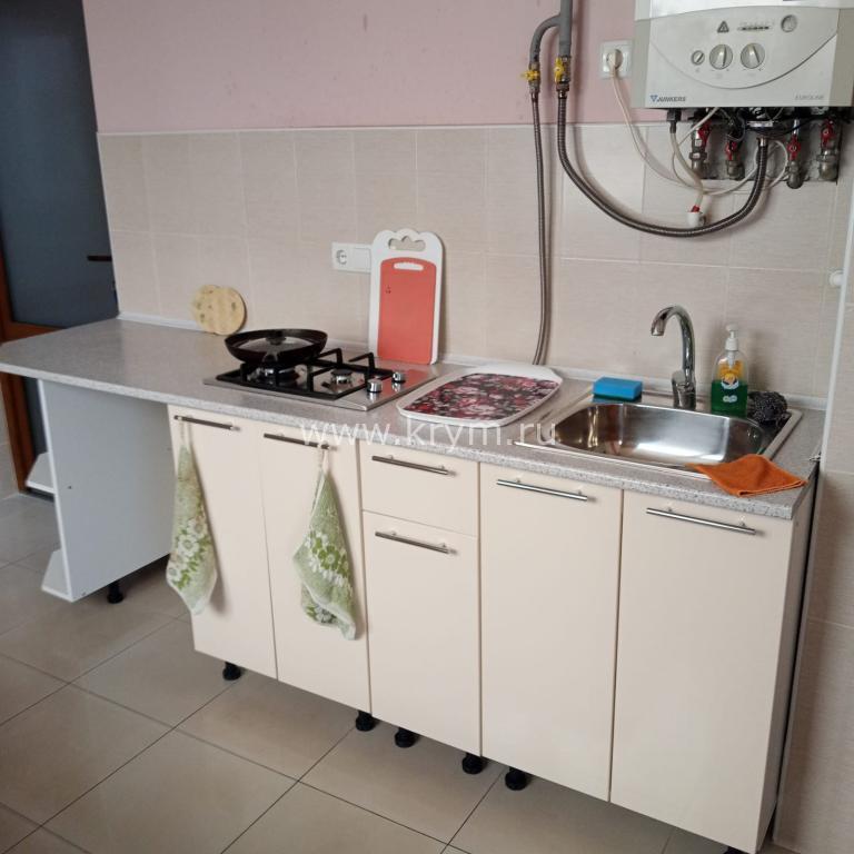 Общая кухня с плитой и всеми кухонными принадлежностями.
